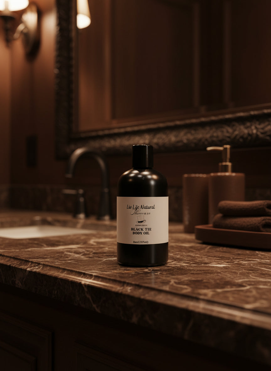 Crafted for the polished man, our body oil provides amazing hydration with zero greasy aftermath. Apply to freshly dampened skin right after showering for maximum absorption and a captivating fragrance that unfolds beautifully as your day unfolds. The rapid-absorbing formula excels across all skin types. Ideal for those sporting fades or completely bald heads, delivering intensive moisture and a distinguished, refined aesthetic. Ginger and cardamom spice open into a sophisticated blend of amber, cedar, and lavender, finished with alluring sandalwood and musk notes. Enhanced with safflower oil, organic evening primrose oil, and essential oils to condition and restore your skin's vitality.