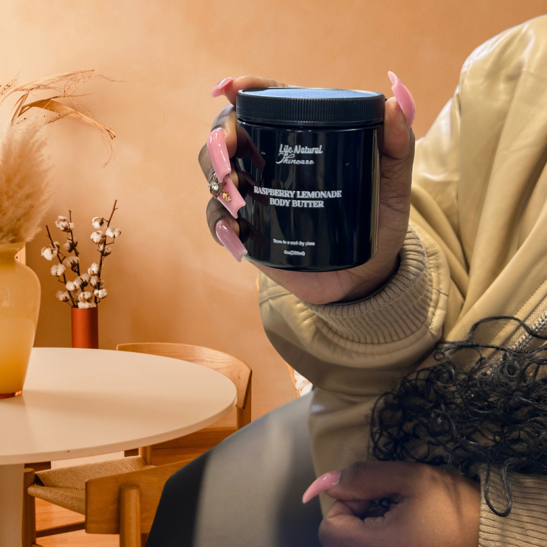 Indulge in the luxurious and nourishing benefits of our Raspberry Lemonade Body Butter. Made with the finest ingredients, this body butter deeply moisturizes and softens your skin, leaving it irresistibly smooth. Treat your senses to the invigorating scent of fresh raspberries and zesty lemon while giving your skin the love it deserves!