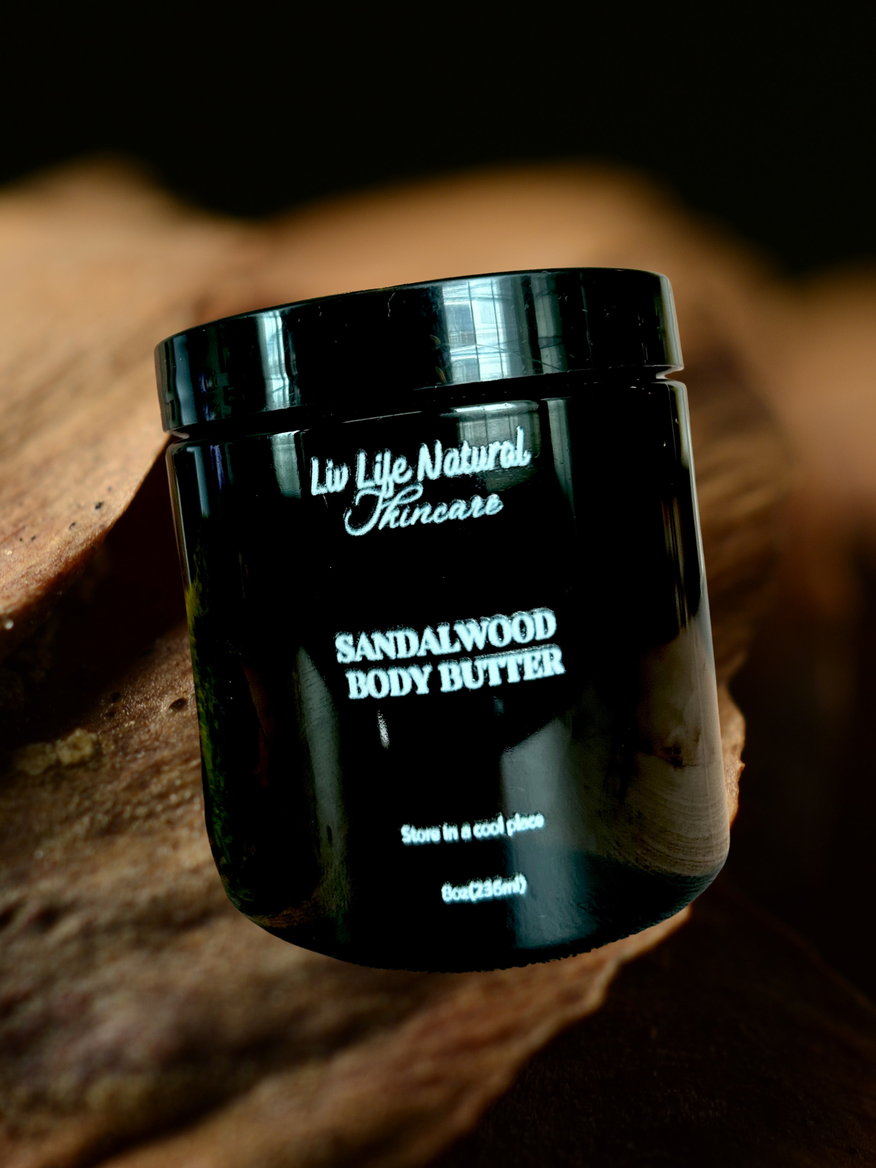 Indulge in luxury with our SANDALWOOD BODY BUTTER, enriched with shea butter. Experience the softness and hydration of shea butter while basking in the alluring and exotic scent of sandalwood. Leave your skin feeling nourished and decadent with every use. Elevate your self-care routine with this premium product.